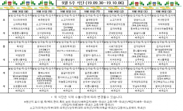 "금주의 식단 메뉴를 확인 할 수 있습니다."