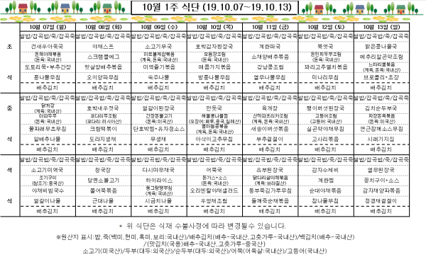 "금주의 식단 메뉴를 확인 할 수 있습니다."
