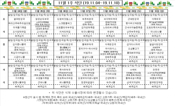 "금주의 식단 메뉴를 확인 할 수 있습니다."