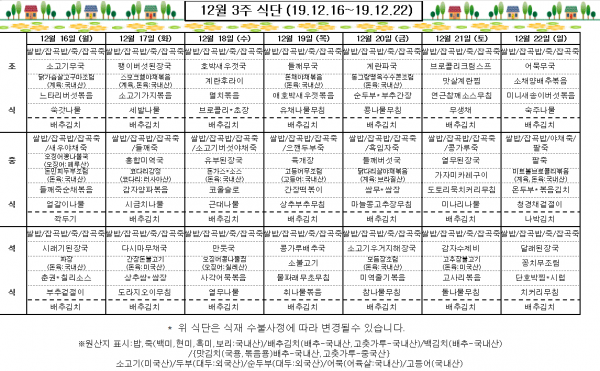 "금주의 식단 메뉴를 확인 할 수 있습니다."