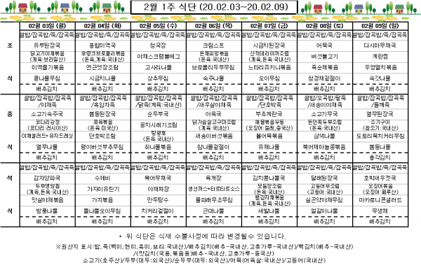 2월 1주 식단표