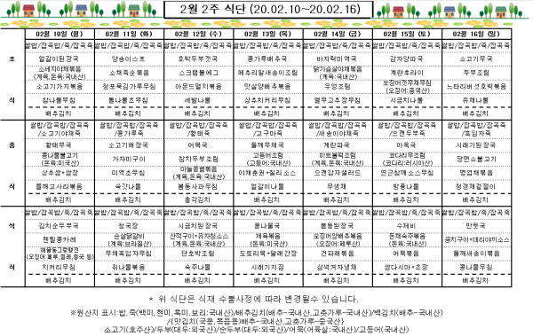 2월 2주 식단표