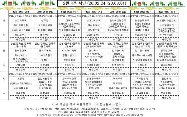 2월 4주 식단표