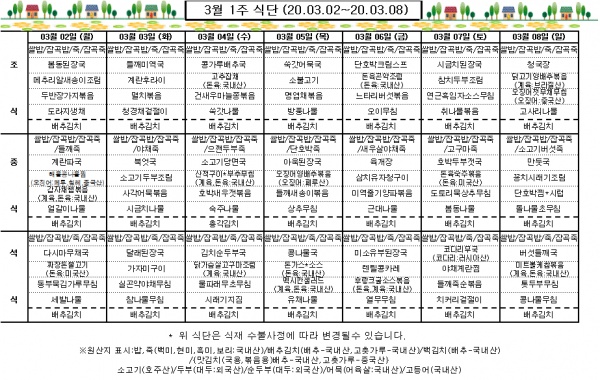 3월 1주 식단표