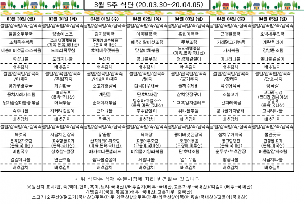 "금주의 식단 메뉴를 확인 할 수 있습니다."