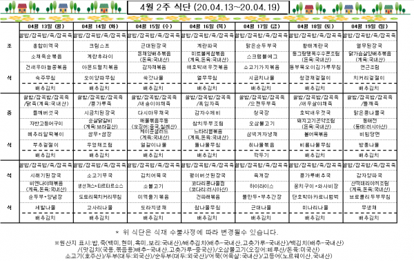 4월 2주 식단표