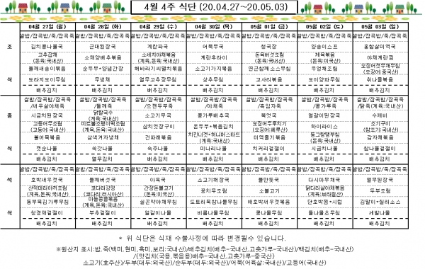 "금주의 식단 메뉴를 확인 할 수 있습니다."