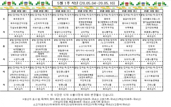 5월 1주 식단표