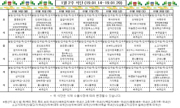 "금주의 식단 메뉴를 확인 할 수 있습니다."