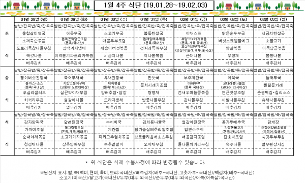 "금주의 식단 메뉴를 확인 할 수 있습니다."