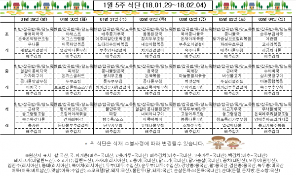 1월 5주 식단표
