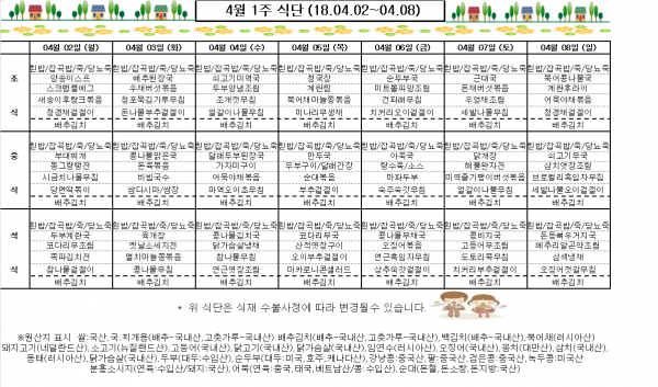 4월 1주 식단표