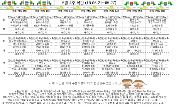 5월 4주 식단표