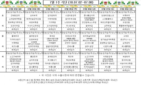 "금주의 식단 메뉴를 확인 할 수 있습니다."