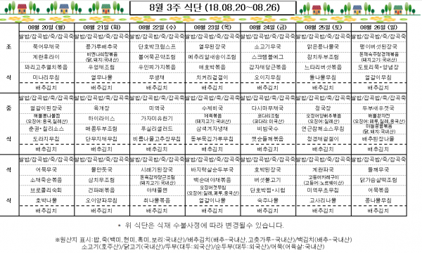8월 3주 식단표