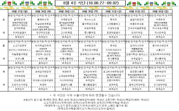 8월 4주 식단표