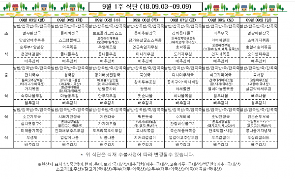 "금주의 식단 메뉴를 확인 할 수 있습니다."