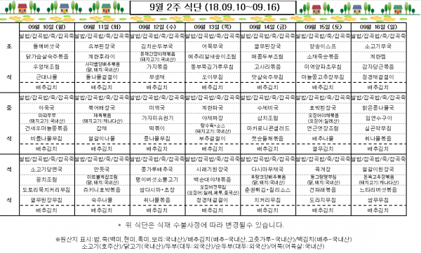 9월 2주 식단표