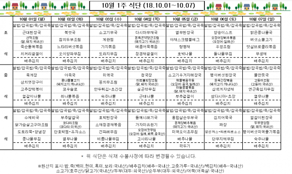 10월 1주 식단표