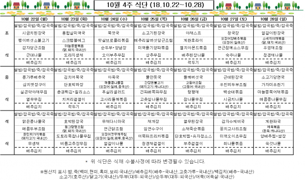 "금주의 식단 메뉴를 확인 할 수 있습니다."