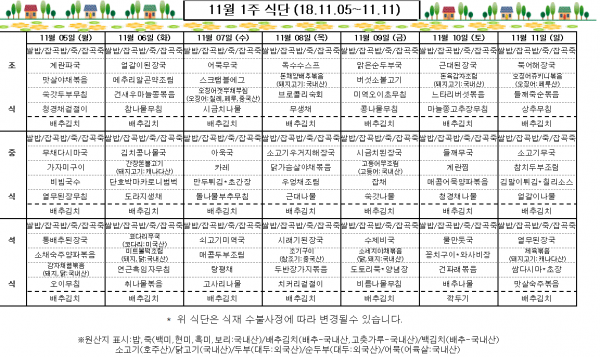 11월 1주 식단표