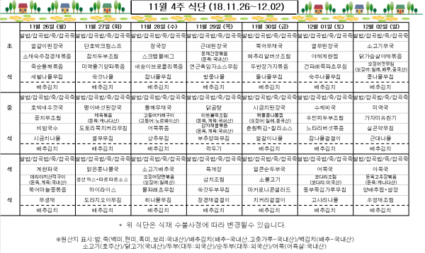 11월 4주 식단표