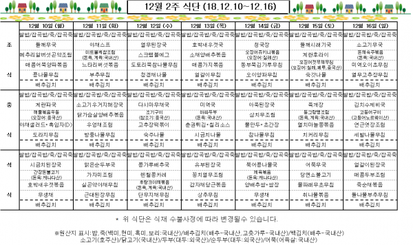 "금주의 식단 메뉴를 확인 할 수 있습니다."
